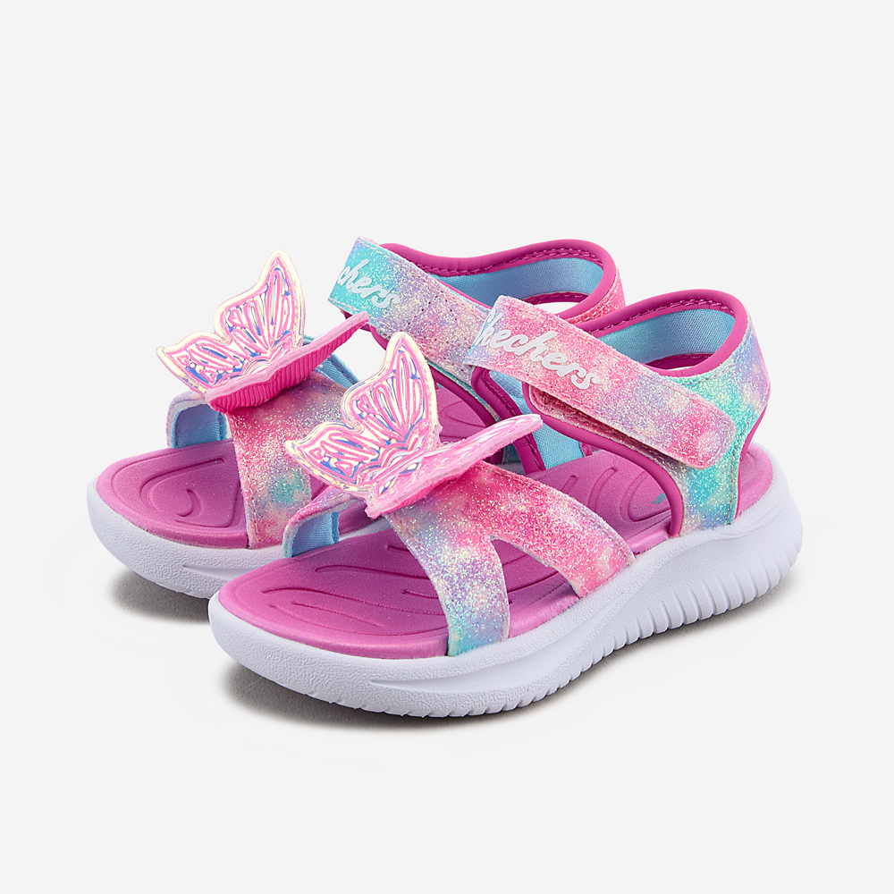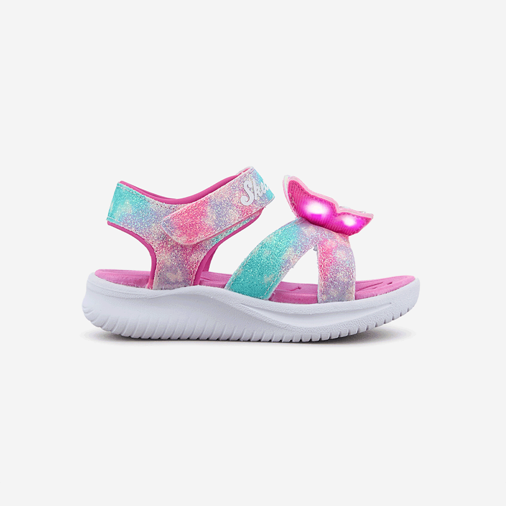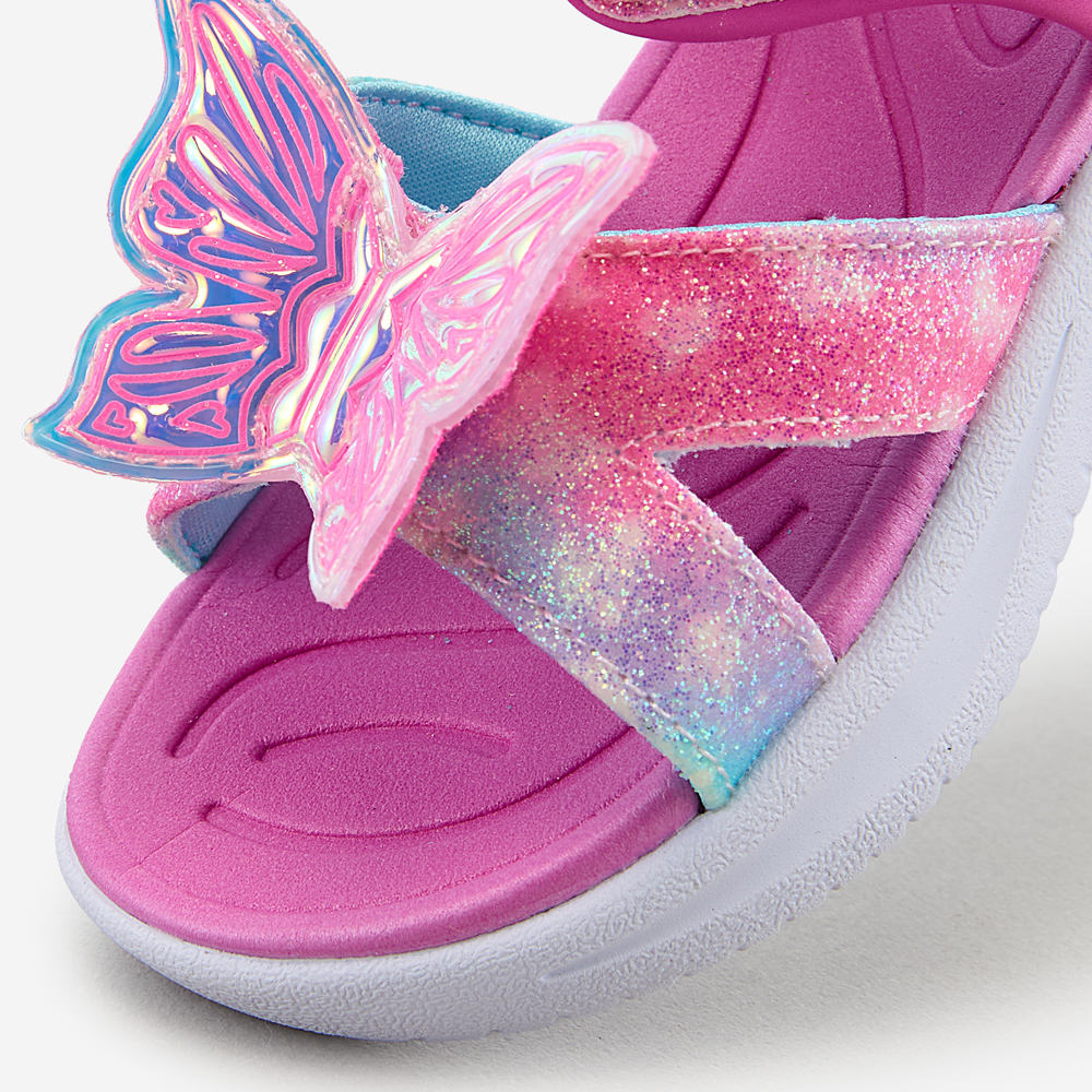 ㆍ파스텔톤 옴브레 어퍼와 불빛이 들어오는 나비 디테일로 포인트를 준 여아 스트랩 샌들