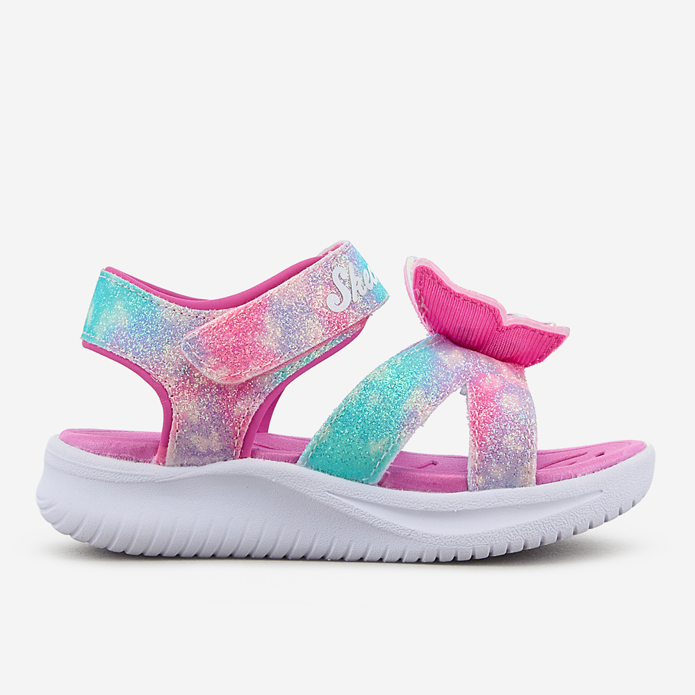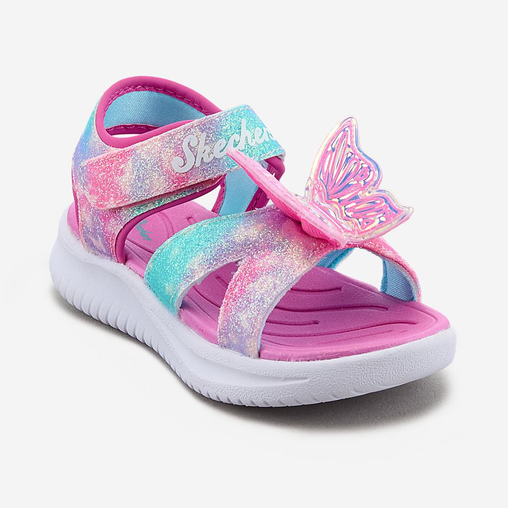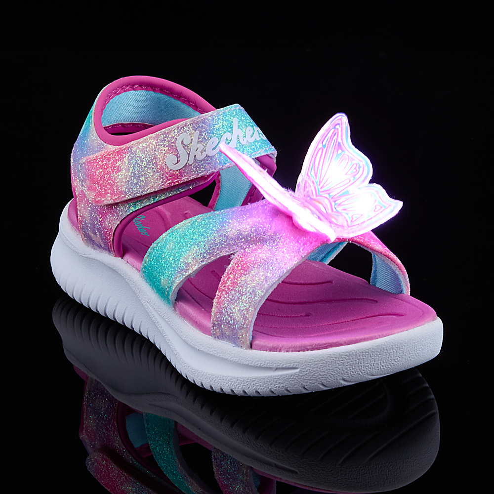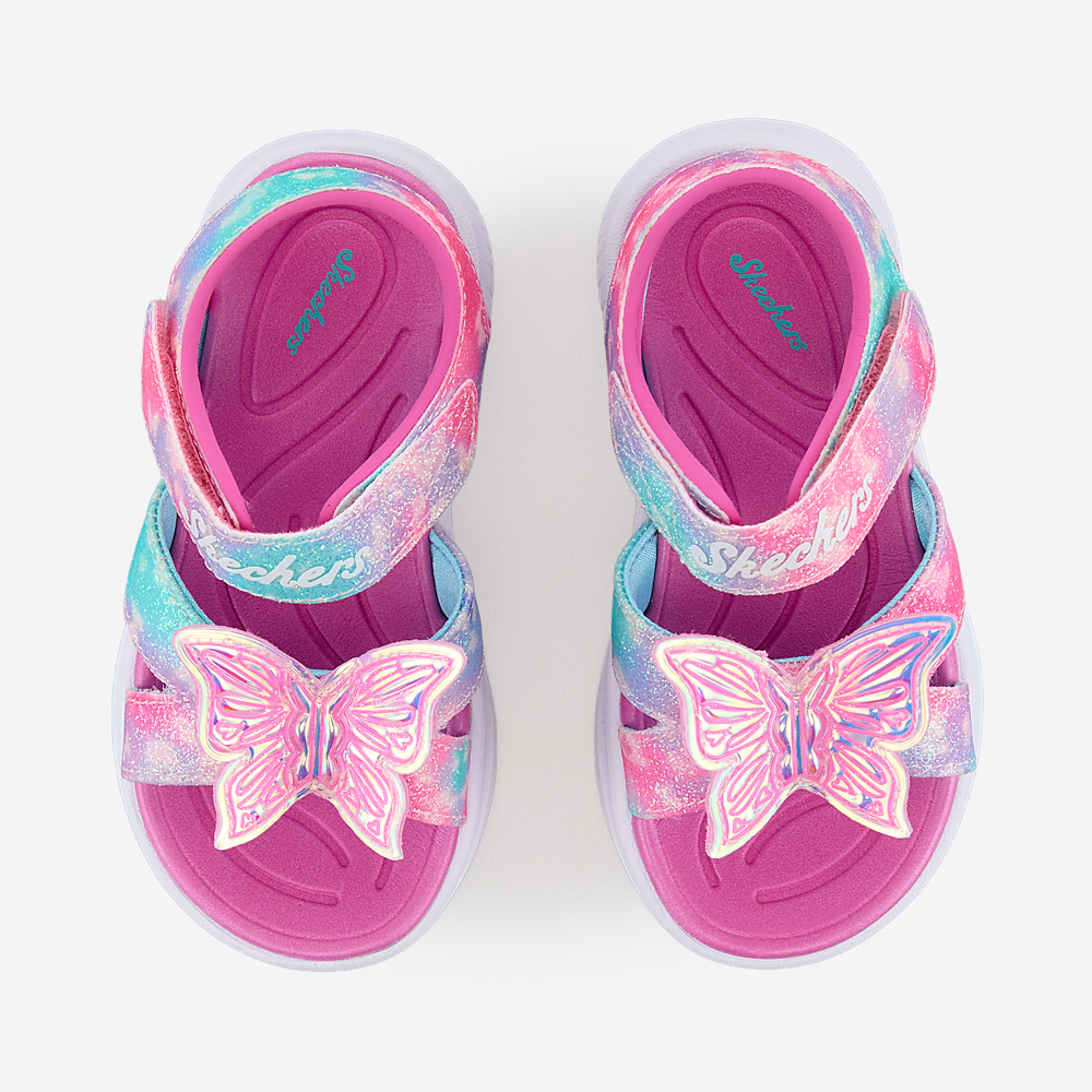 ㆍ파스텔톤 옴브레 어퍼와 불빛이 들어오는 나비 디테일로 포인트를 준 여아 스트랩 샌들