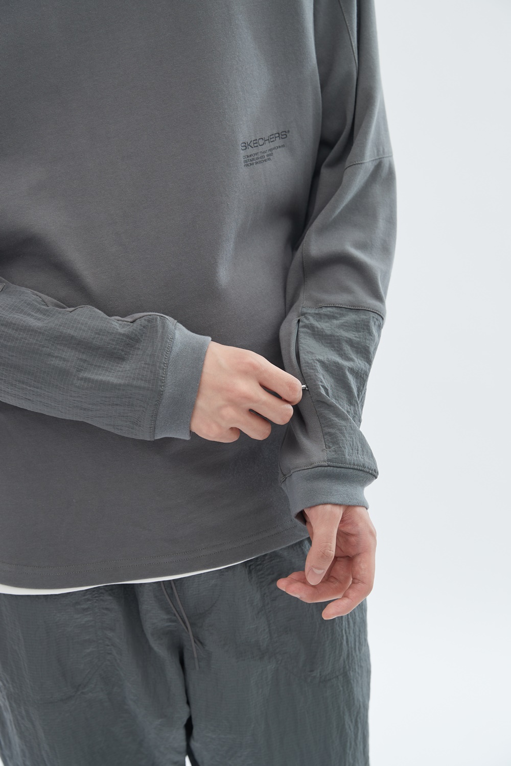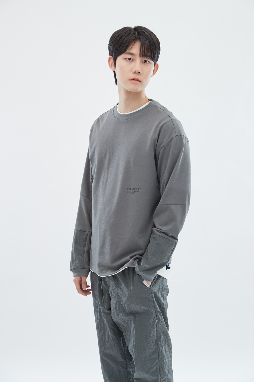 [스케쳐스 어패럴] 남성 우븐+니트 믹스 하이브리드 티셔츠