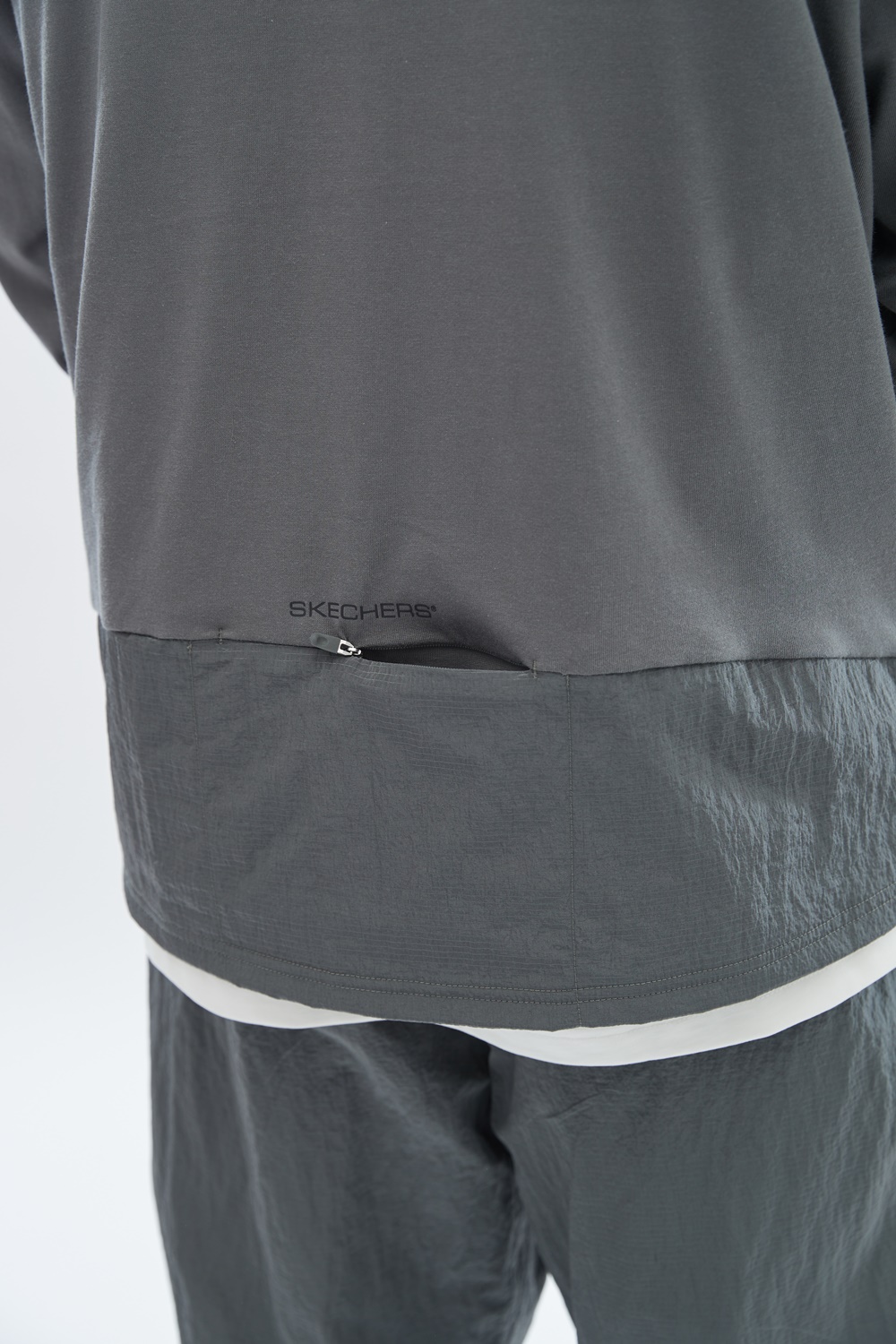 등판 하단과 소매 부분에 우븐 립스탑 원단 배색을 사용하여 디자인을 가미한 제품