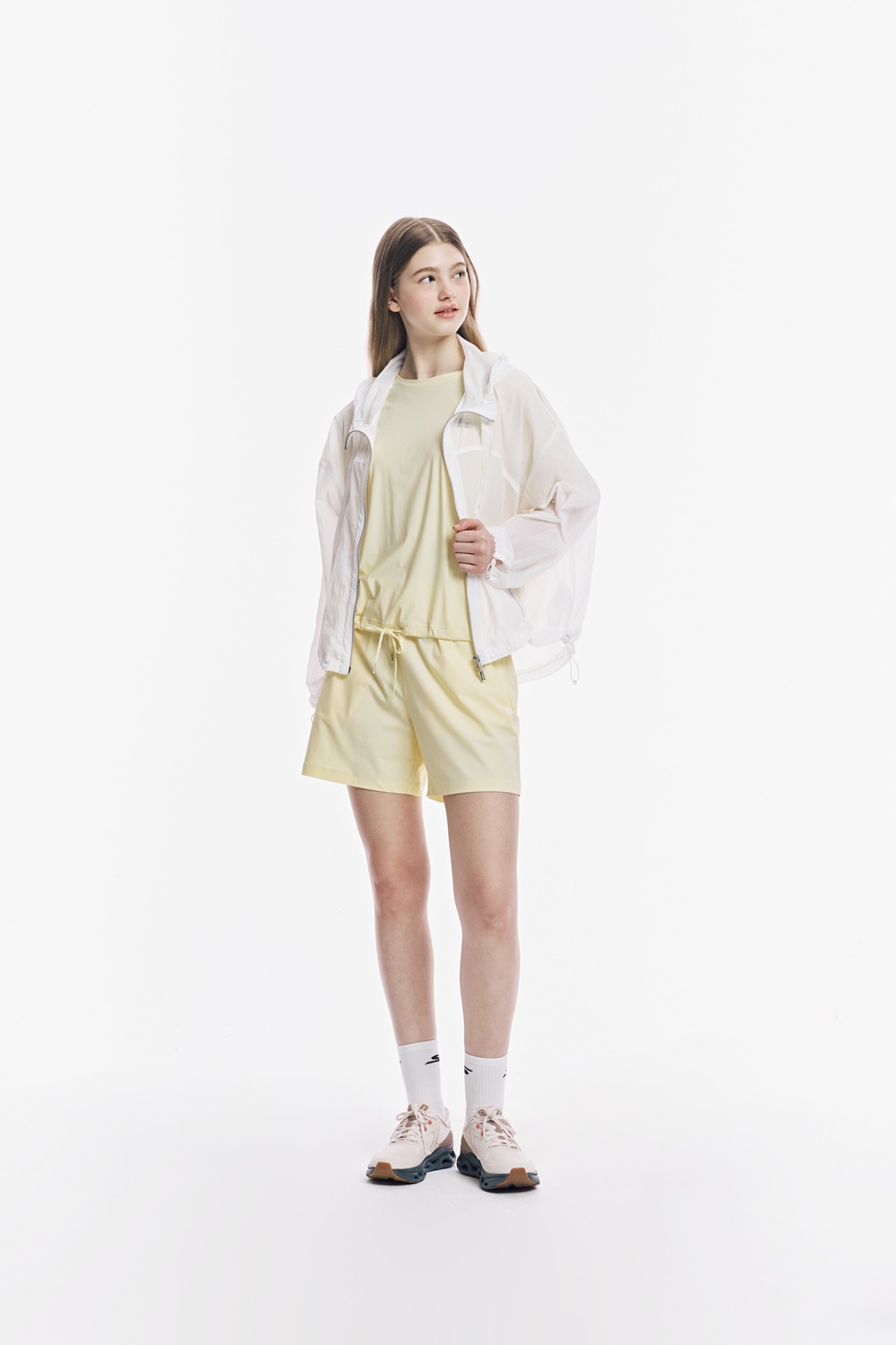 접촉 냉감 원단으로, 시원한 착용감을 주며, 신축성이 뛰어나 편안하게 착용 가능