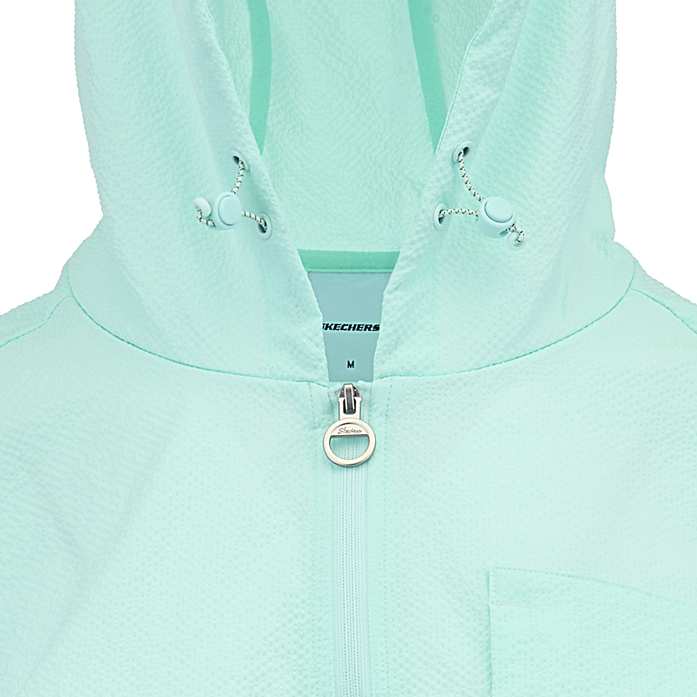 [스케쳐스 어패럴] 여성 시티 시어서커 반팔 후드 티셔츠